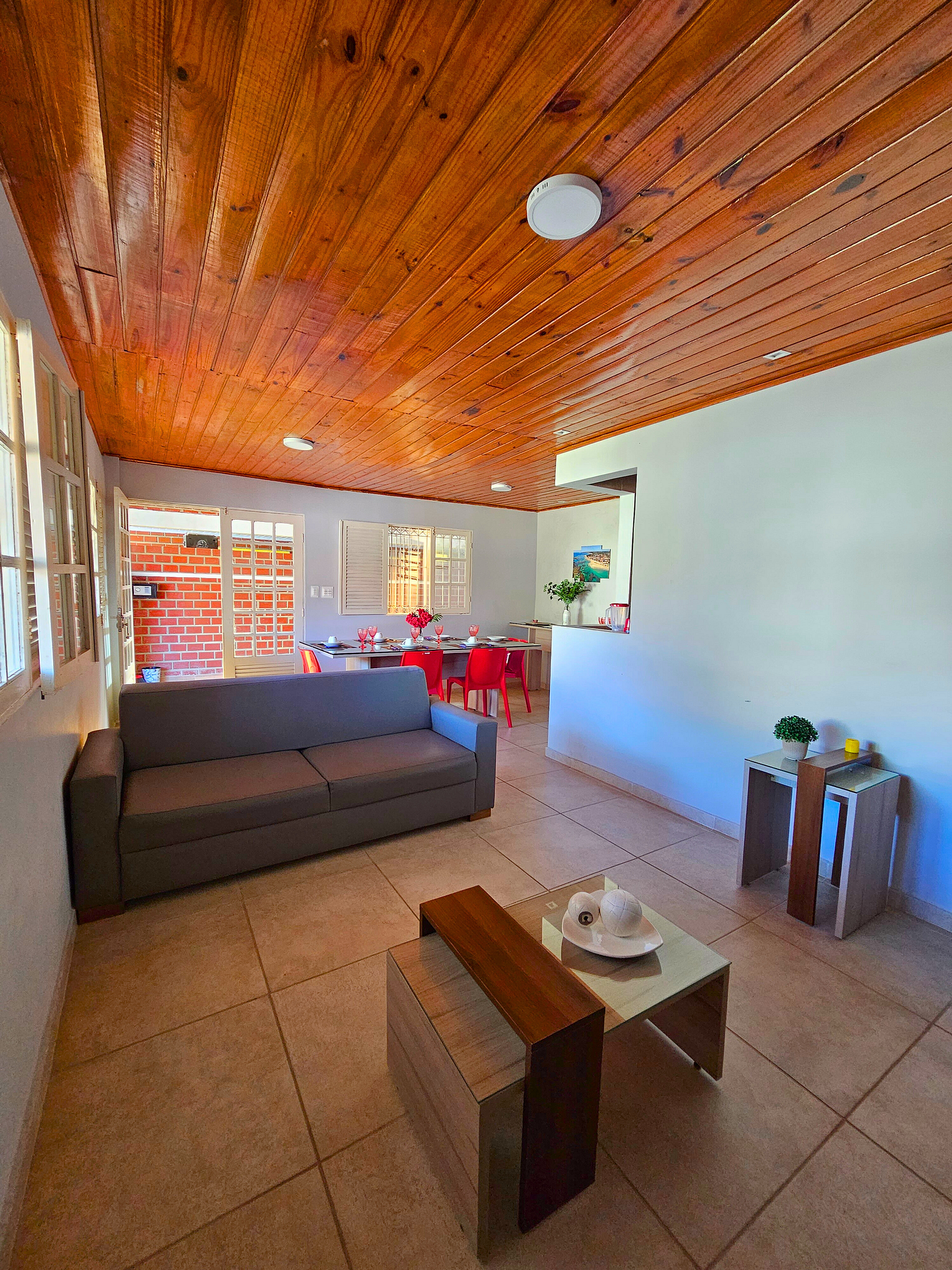 A casa é maravilhosa. Um encanto de condomínio pertinho da praia e seguro pra crianças e idosos. Tudo muito organizado e limpo. As camas todas têm tecido tipo naval que é mais adequado para a limpeza. E da varanda dá pra ouvir o som do mar a noite toda. Minha família amou. Quero voltar sempre. E as anfitriãs são nota mil.