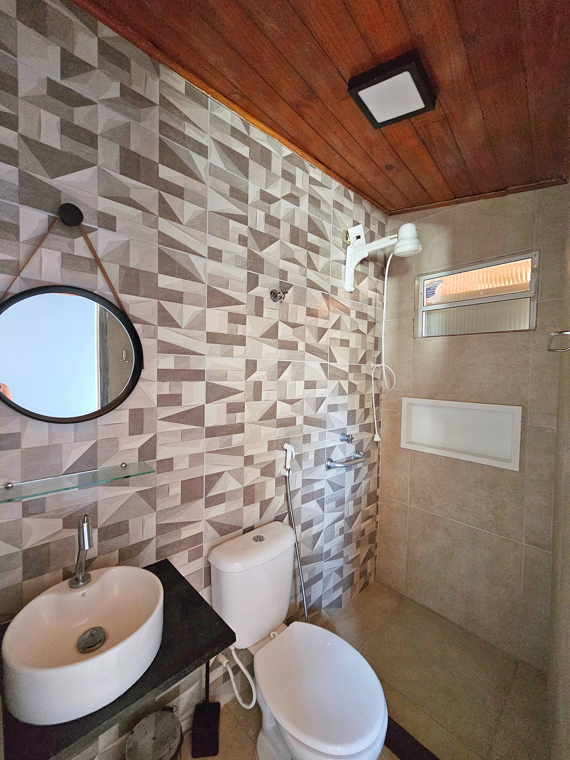 Our guests appreciate the large balcony, the barbecue and the private shower. Also the outdoor pool, sports field and free self-parking (3 spaces in front of the house). The main amenities you will enjoy at the property: Free Wi-Fi in the house, Smart TV e split air conditioning. The condominium is close to the natural pools of Pontal do Cupe.