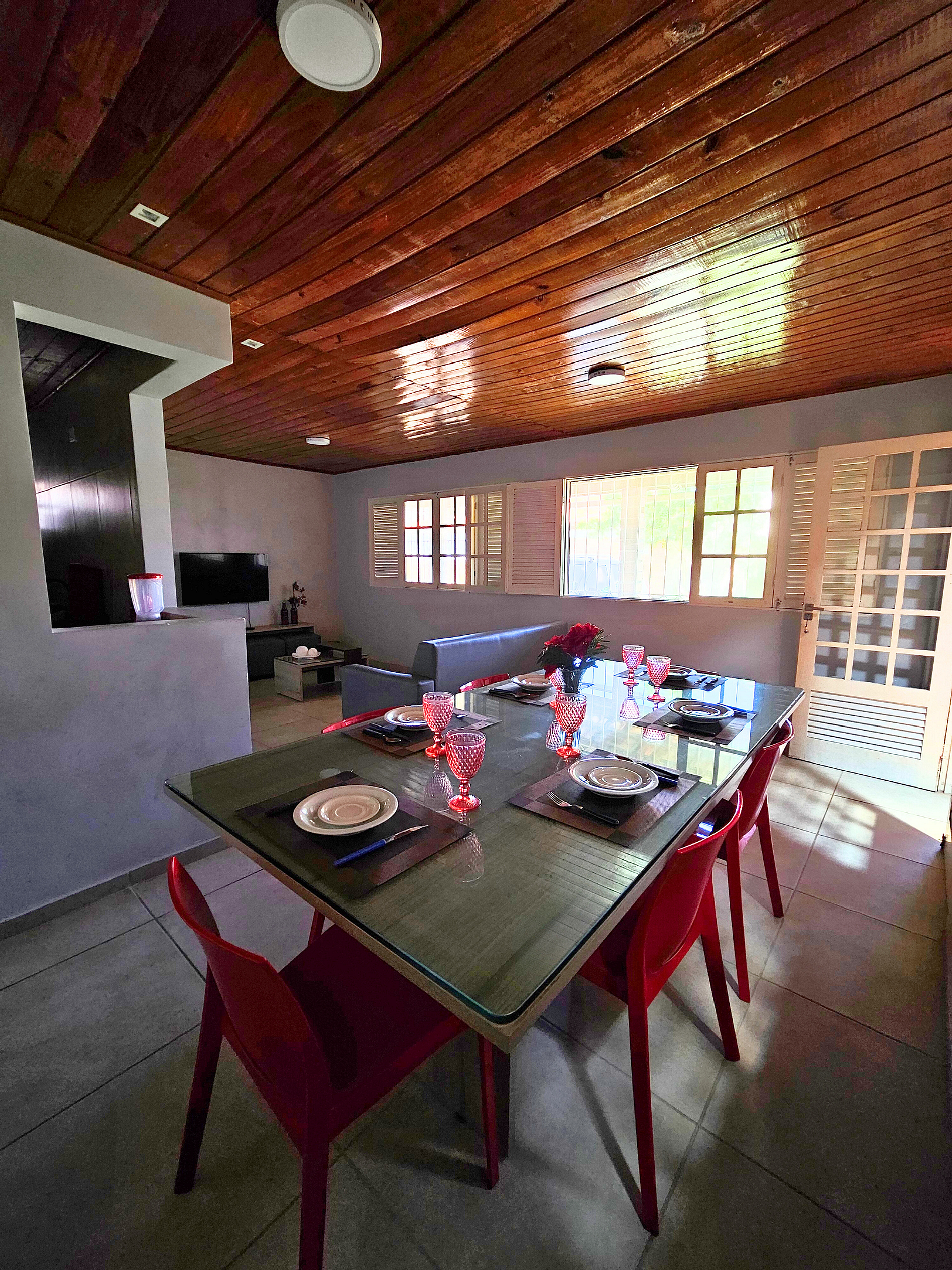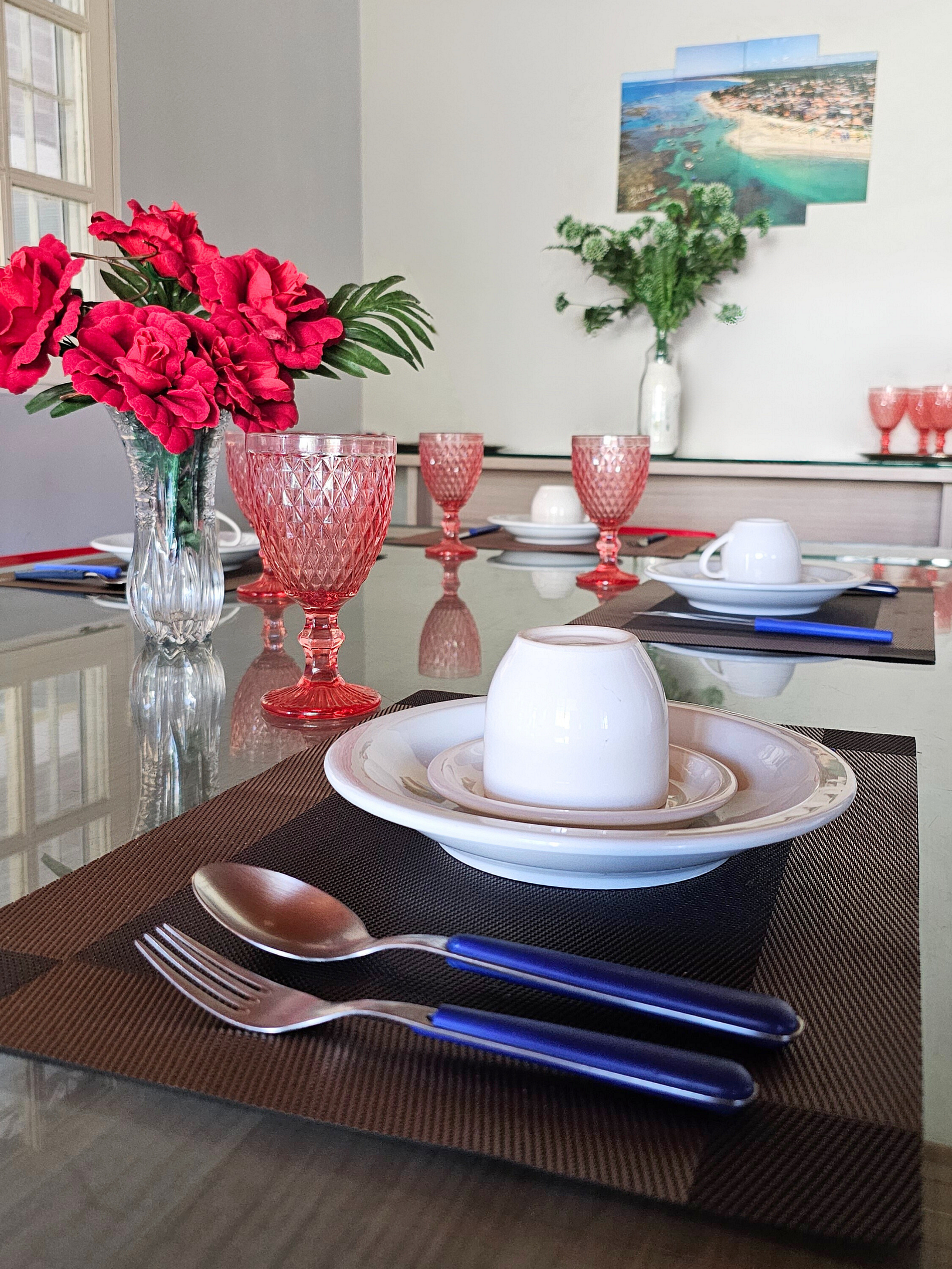 A casa é maravilhosa. Um encanto de condomínio pertinho da praia e seguro pra crianças e idosos. Tudo muito organizado e limpo. As camas todas têm tecido tipo naval que é mais adequado para a limpeza. E da varanda dá pra ouvir o som do mar a noite toda. Minha família amou. Quero voltar sempre. E as anfitriãs são nota mil.